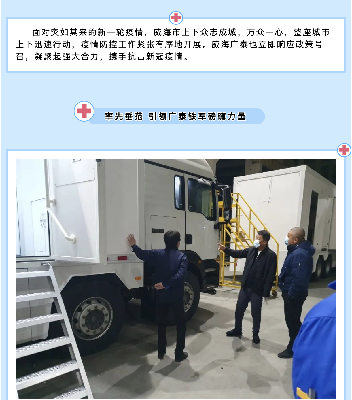 72小時緊急馳援,抗疫重器廣泰移動PCR生物安全實驗室為核酸檢測加速度!2022年3月8日,面對突如其來的新一輪疫情,威海市上下眾志成城,萬眾一心,整座城市上下迅速行動,疫情防控工作緊張有序地開展。始|火速集結(jié) 3月9日深夜,一通電話讓廣泰人迅速集結(jié)。威海廣泰空港設(shè)備股份有限…