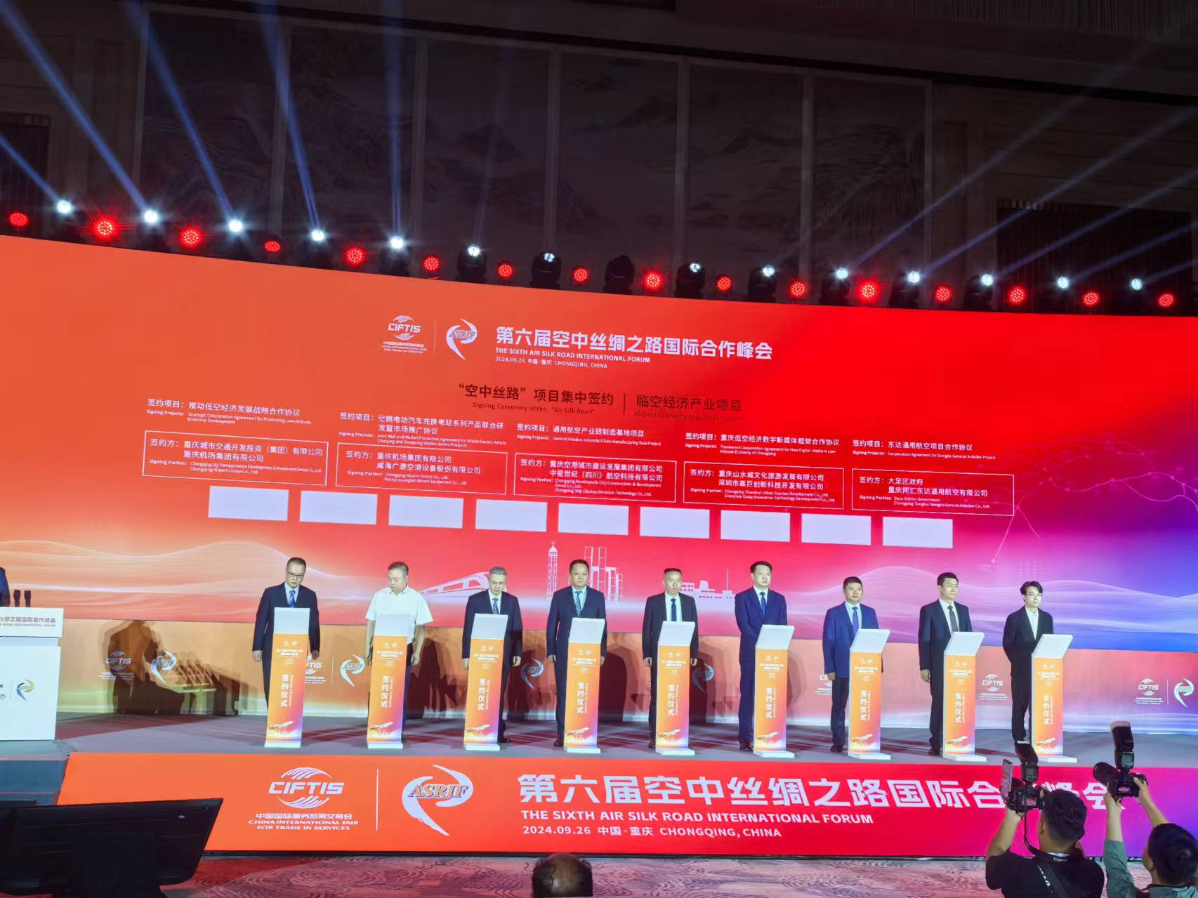 9月26日,威海廣泰空港設(shè)備股份有限公司(以下簡稱:“威海廣泰”)應(yīng)邀參加在重慶舉辦的第六屆“空中絲綢之路”國際合作峰會(huì)(ASRIF),營銷中心總經(jīng)理羅瑜代表公司出席并與重慶機(jī)場集團(tuán)有限公司(以下簡稱:重慶機(jī)場集團(tuán))黨委委員、副總經(jīng)理熊德智共同簽署了空側(cè)電動(dòng)汽車充換電站…