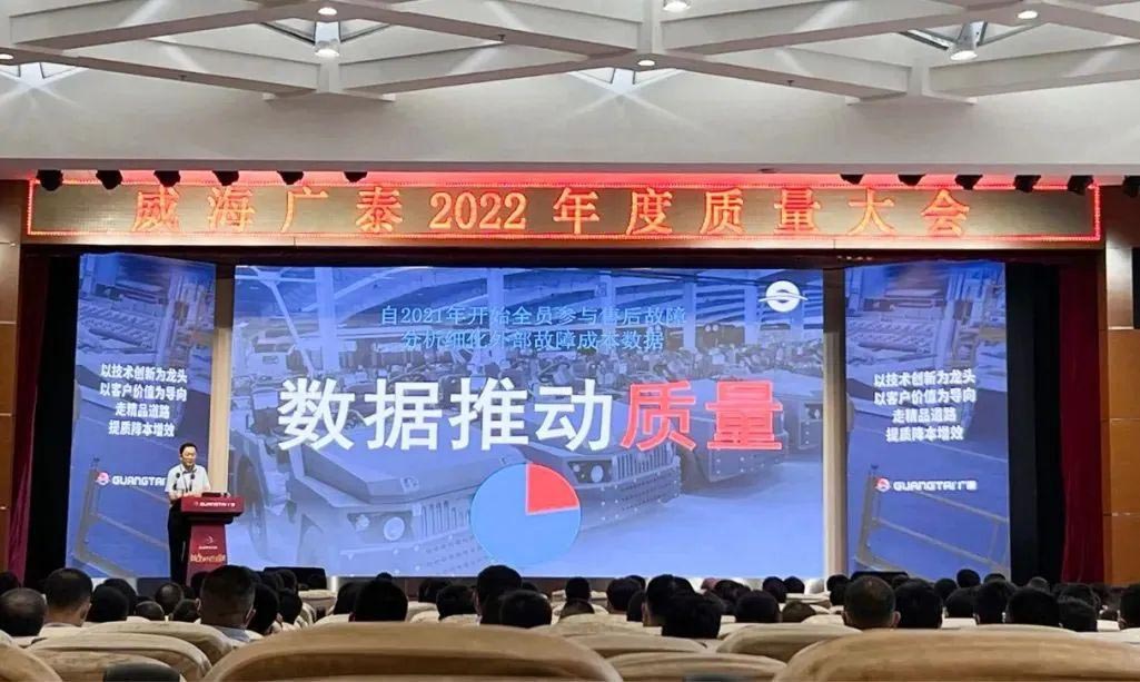 下午13:30,在廣泰研發(fā)大樓禮堂,威海廣泰召開以“數(shù)據(jù)推動質(zhì)量創(chuàng)新 全面參與持續(xù)創(chuàng)新”為主題的2022年度質(zhì)量大會,李文軒董事長出席會議,公司副總經(jīng)理尚羽主持會議,各分子公司同步線上參會。